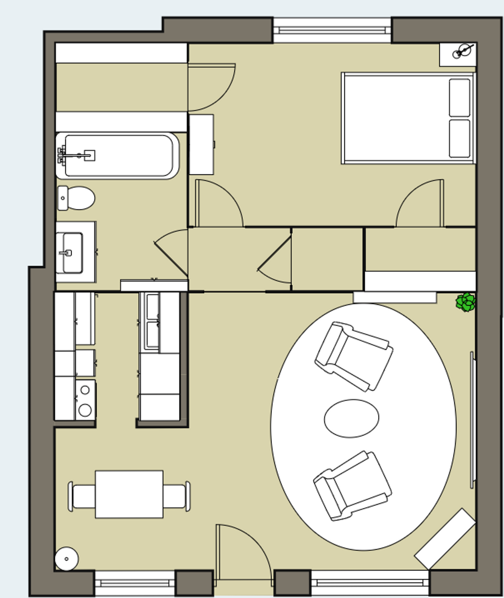 • Kitchen Features: Refrigerator & Stove/Oven.